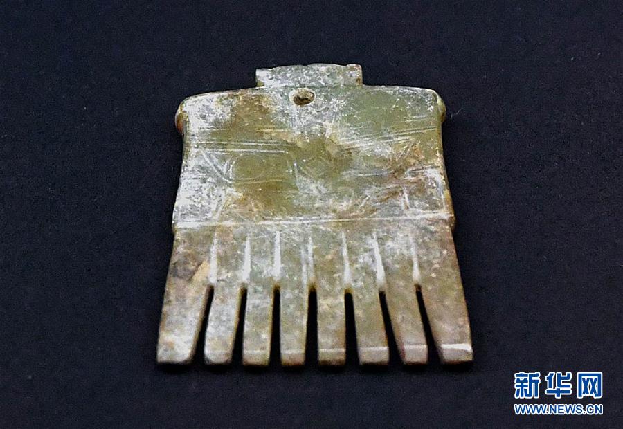 这是在河南安阳妇好墓出土的玉梳(2018年10月12日摄)。 新华社记者 李安 摄