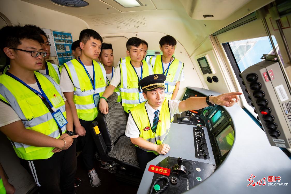 2019年8月21日,西安机务段机车整备场,火车司机党员骨干正在为新工们讲解机车设备知识。近日,中国铁路西安局集团有限公司西安机务段迎来百余名新工。为了做好培训,西安机务段分批组织新工到作业现场观摩学习,讲解机务运用检修、机车设备构造等知识,给未来走向工作岗位打下坚实基础。(刘翔摄/光明图片)