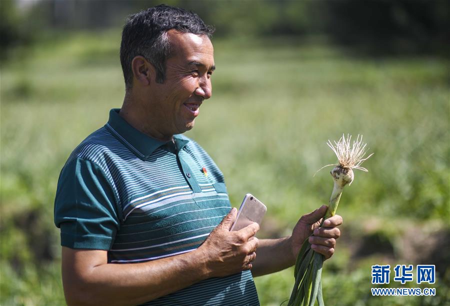 8月22日,且末县库拉木勒克乡江尕勒萨依村村民展示高原香蒜。 新华社记者 赵戈 摄
