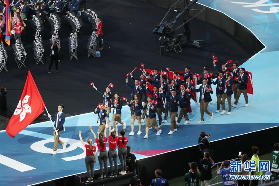 8月22日,在俄罗斯喀山体育场,中国香港代表团在第45届世界技能大赛开幕式上出场。 第45届世界技能大赛22日在俄罗斯鞑靼斯坦共和国首府喀山开幕,中国代表团的63名参赛选手将参加全部项目的比赛,向世界展示“大国工匠”的风采。 本届世界技能大赛将持续至27日,来自世界技能组织69个成员国家和地区的1355名选手将在6大类56个项目上展开竞技。 新华社记者 鲁金博 摄