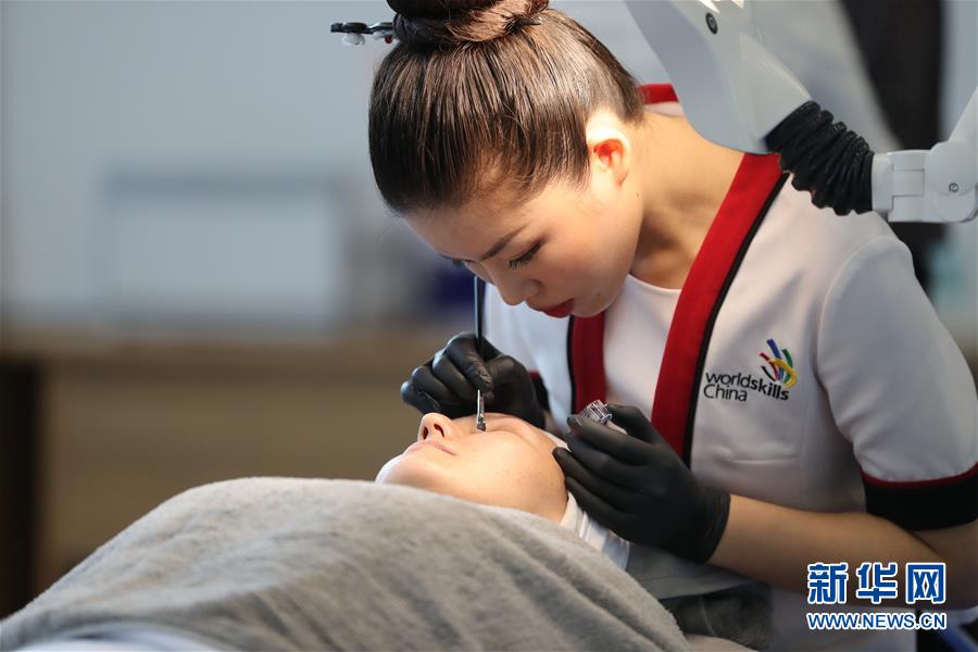 8月23日,在俄罗斯喀山,中国选手、重庆科技学院学生李真芹参加美容项目比赛。新华社记者 鲁金博 摄