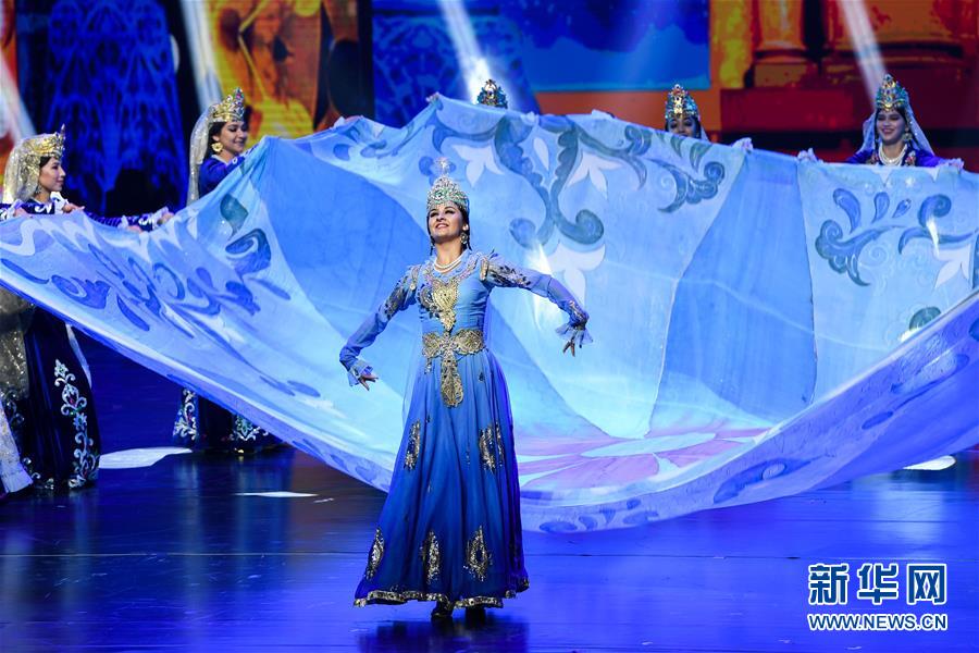 8月23日,来自乌兹别克斯坦的演员在表演节目。 新华社记者 刘磊 摄
