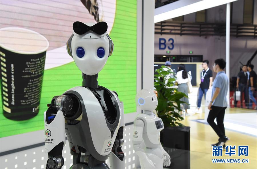 这是2019世界机器人大会上展出的云端智能服务机器人(8月20日摄)。 新华社发(任超 摄)