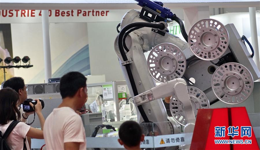 这是2019世界机器人大会上展出的工业机器人(8月21日摄)。 新华社记者 李欣 摄