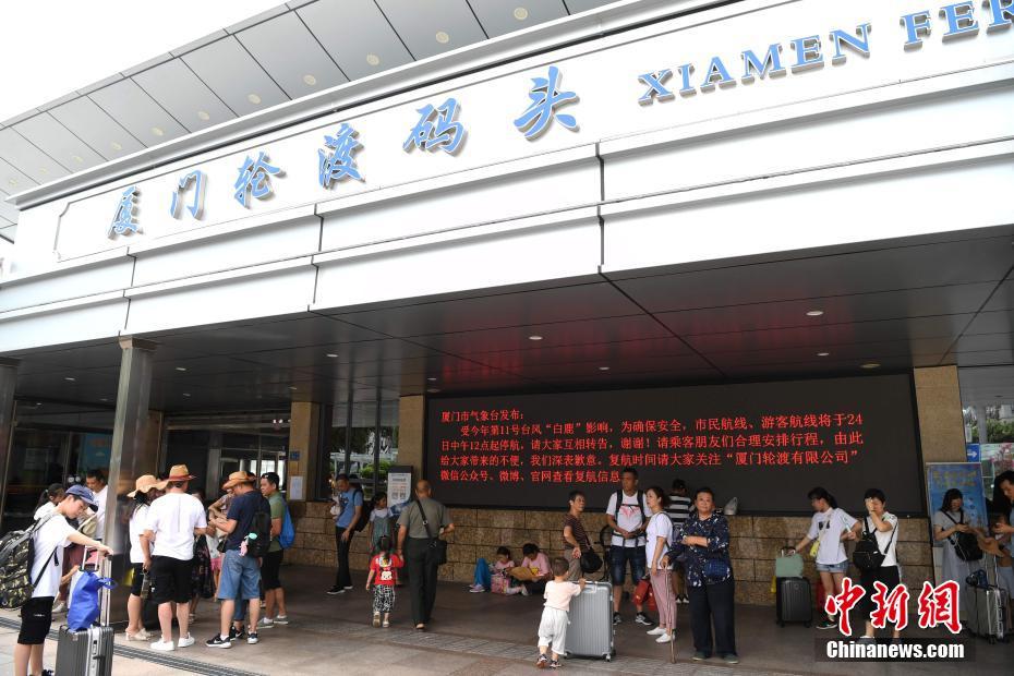 8月24日,今年第11号台风“白鹿”正向福建闽南沿海迫近。为了应对今年首个正面影响厦门的台风,当日,厦门大嶝至小嶝航线,海上游航线,厦门至金门航线停航。图为厦门轮渡码头因停航不能出行的市民与游客。 中新社记者 张斌 摄