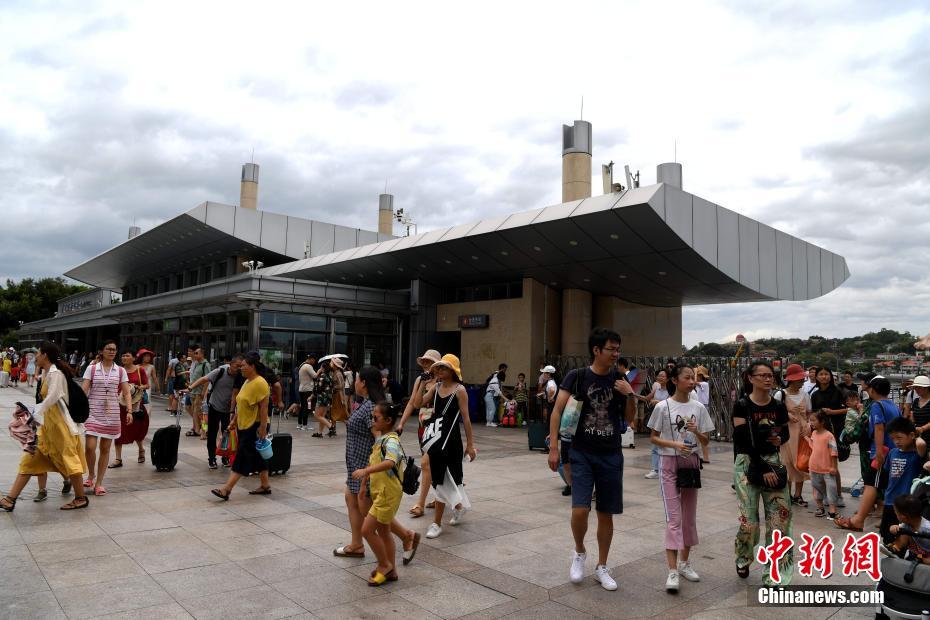 8月24日,受台风“白鹿”影响,鼓浪屿所有景点关闭。目前,今年第11号台风“白鹿”正向福建闽南沿海迫近,它将成为今年首个正面影响厦门的台风。目前,厦门全市A级景区景点已关闭53个。图为鼓浪屿景点关闭后出岛的游客。 中新社记者 张斌 摄