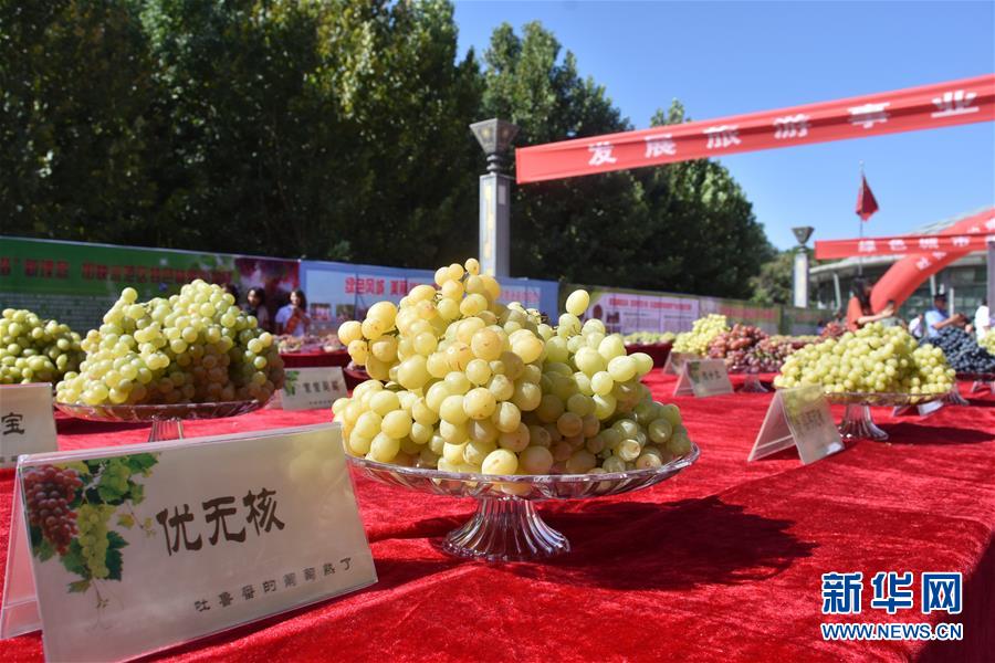 吐鲁番葡萄节开幕式现场展示的葡萄(8月23日摄)。新华社记者 孙少雄 摄