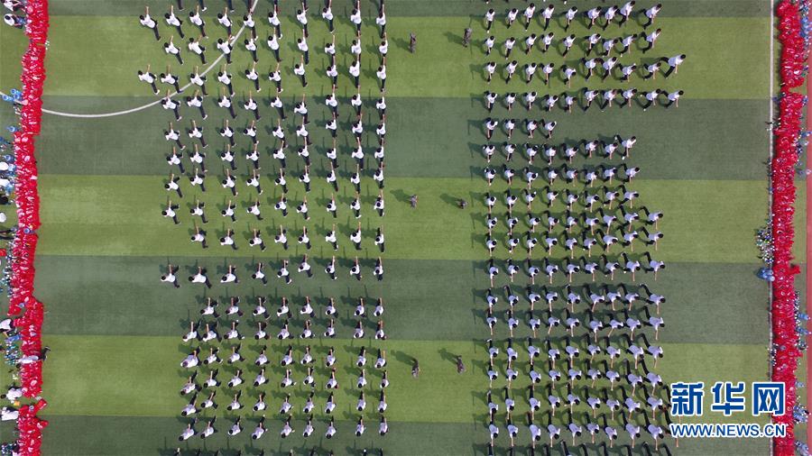 8月27日,河北省衡水市第二中学高一新生进行入学军训(无人机拍摄)。新华社记者 朱旭东 摄