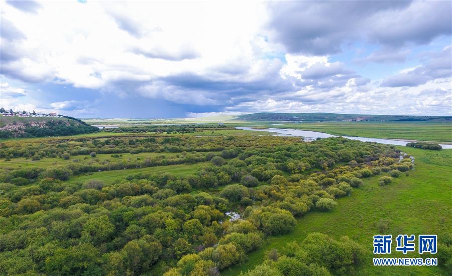这是8月26日无人机拍摄的呼伦贝尔大草原。 位于内蒙古东北部的呼伦贝尔大草原景色宜人。秋雨过后,云层低垂笼罩四野,蜿蜒曲折的河流在草原上流淌,构成一幅动人画卷。 新华社记者 彭源 摄