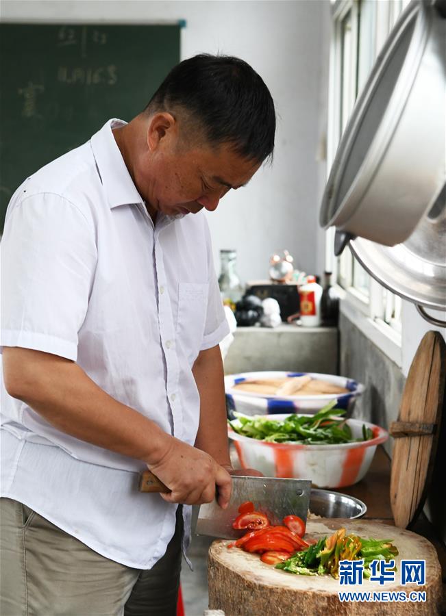 8月27日,吴国先为学生的午餐准备食材。新华社记者 杨文斌 摄