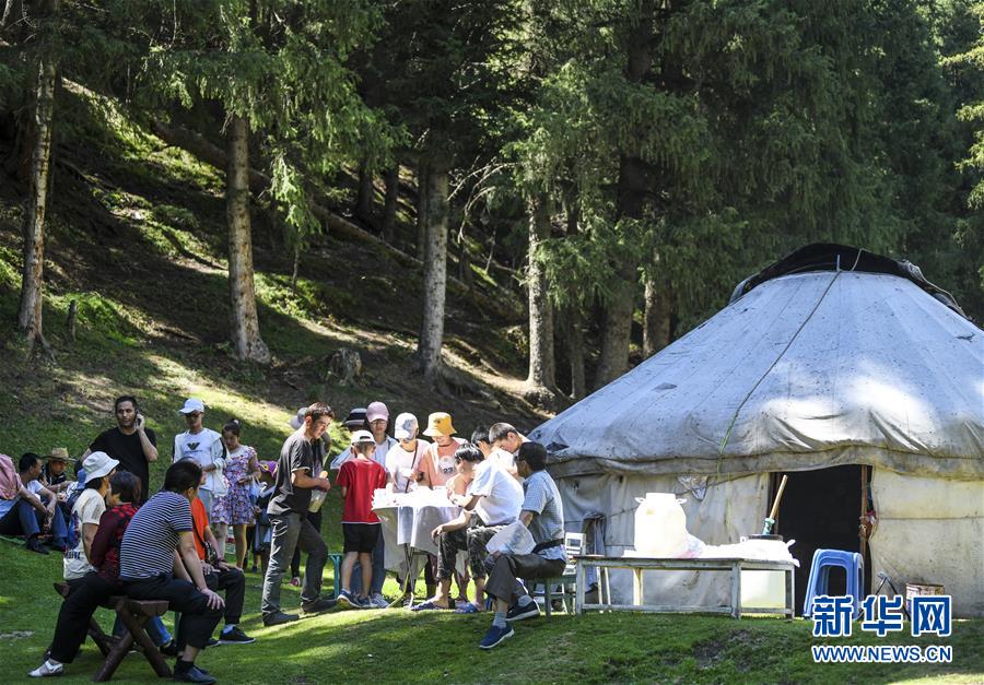 游客在天山大峡谷景区内的“牧家乐”观光购物(8月9日摄)。新华社记者 王菲 摄