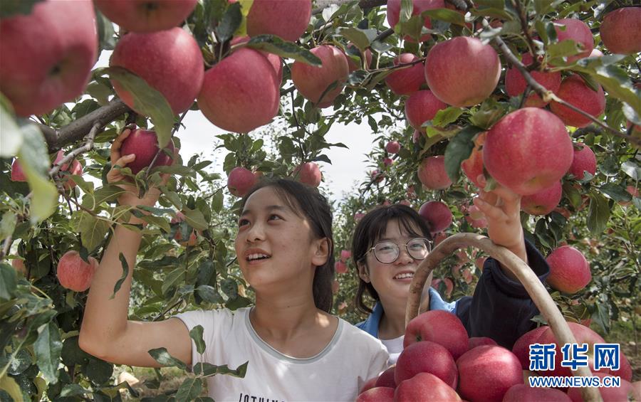 8月28日,洛川县永乡镇方厢村果农在自家苹果园采摘苹果。新华社记者 陶明 摄