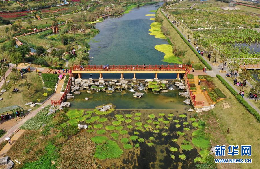 市民在广西南宁市那考河湿地公园游览(2月6日无人机拍摄)。 今年上半年,全国地级及以上城市国家地表水考核断面水环境质量排名“十强”中,广西占“半壁江山”,其中广西来宾市高居全国首位。 这些年,广西坚持生态优先谋发展理念,不断强化重点流域水环境综合治理,许多流域水质持续变好。 新华社记者 周华 摄