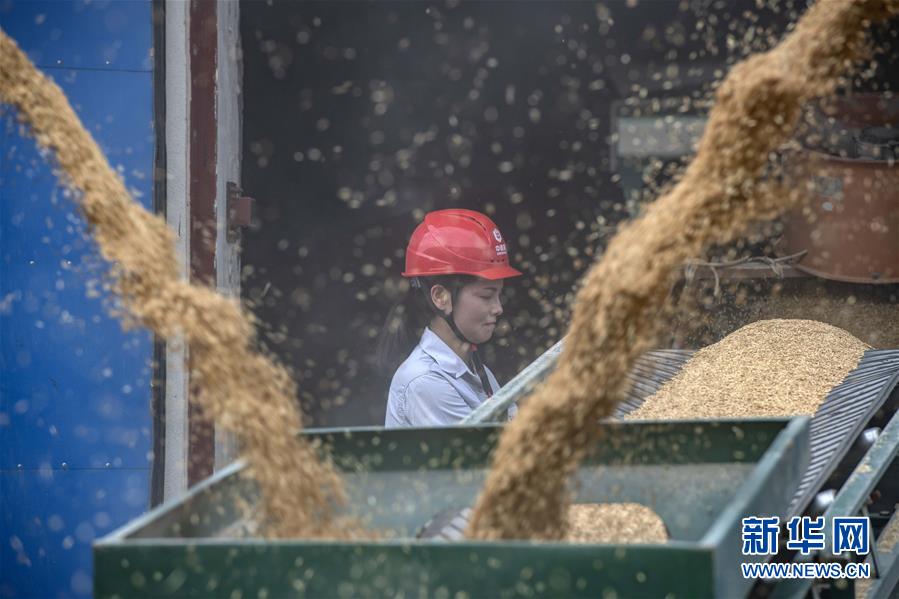 8月28日,中储粮潜江直属库新购稻谷正在入库。新华社记者 杜华举 摄