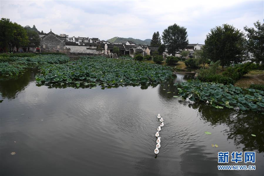 这是呈坎村内的荷塘(8月28日摄)。新华社记者 刘军喜 摄