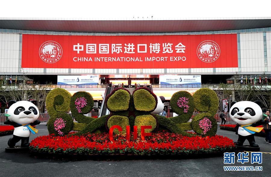 在国家会展中心(上海)场馆外,进博会吉祥物“进宝”准备迎接四方宾客(2018年11月4日摄)。新华社记者 陈飞 摄