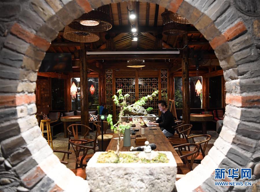 8月28日,游客在徽州区西溪南镇西溪南村的一家民宿内。 近年来,安徽省黄山市徽州区西溪南镇依托当地徽州古村落及生态环境资源,着力打造民宿集聚区,发展文化旅游产业,助力乡村振兴。 新华社记者 刘军喜 摄