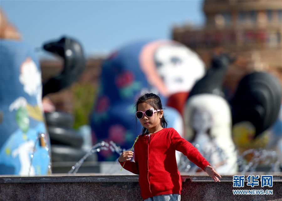 游客在满洲里套娃广场内游览(8月29日摄)。 坐落于内蒙古边境城市满洲里市的套娃广场,是全国唯一以俄罗斯传统工艺品——套娃形象为主题的大型综合旅游度假景区,该景区由主题园区、主题娱乐、主题酒店三部分组成,游客走进套娃广场,仿佛来到一个五彩缤纷的童话世界。 新华社记者 任军川 摄