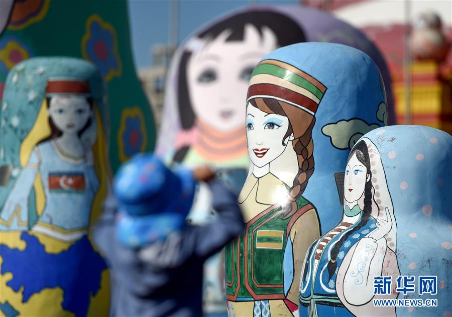 游客在满洲里套娃广场内拍照留念(8月29日摄)。 坐落于内蒙古边境城市满洲里市的套娃广场,是全国唯一以俄罗斯传统工艺品——套娃形象为主题的大型综合旅游度假景区,该景区由主题园区、主题娱乐、主题酒店三部分组成,游客走进套娃广场,仿佛来到一个五彩缤纷的童话世界。 新华社记者 任军川 摄