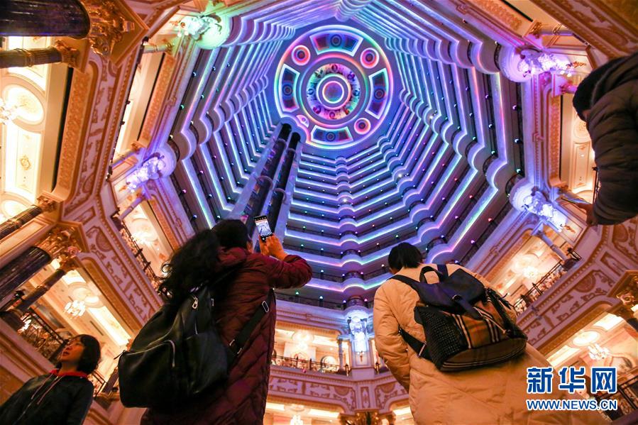 游客在满洲里套娃广场中的套娃主题酒店内拍照留念(8月27日摄)。 坐落于内蒙古边境城市满洲里市的套娃广场,是全国唯一以俄罗斯传统工艺品——套娃形象为主题的大型综合旅游度假景区,该景区由主题园区、主题娱乐、主题酒店三部分组成,游客走进套娃广场,仿佛来到一个五彩缤纷的童话世界。 新华社记者 李京 摄