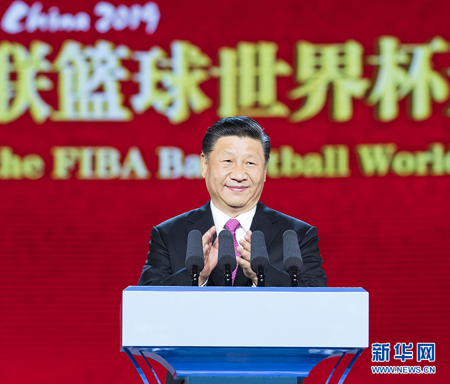 8月30日晚,2019年国际篮联篮球世界杯开幕式在北京水立方举行。国家主席习近平出席开幕式并宣布2019年国际篮联篮球世界杯开幕。 新华社记者 黄敬文 摄