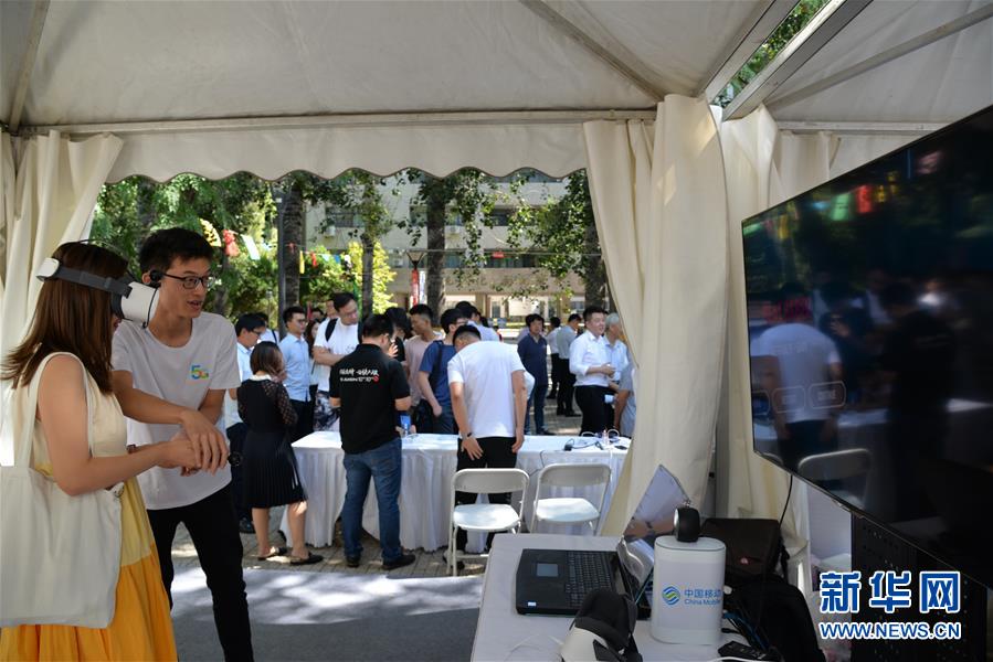 8月31日,在北京交通大学校园内,工作人员(左二)在指导参观者体验基于5G网络的云游戏。 当日,“思源方能致远 共创5G未来——北京交通大学5G综合应用创新推广活动”在北京交通大学举办。活动现场展示了5G机器人、云游戏、4K VR直播等近三十个5G创新应用,吸引众多专家学者、高校学子前来体验。 新华社记者 徐钦 摄
