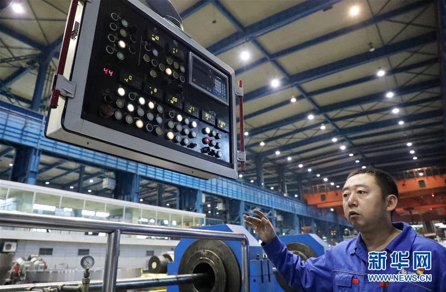 中国一重集团“刀客”桂玉松在观察设备运行(8月25日摄)。新华社记者 王君宝 摄