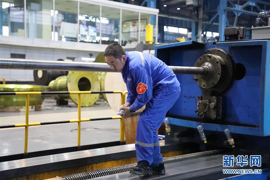中国一重集团“刀客”桂玉松在检查机床(8月25日摄)。新华社记者 王君宝 摄