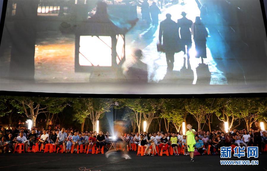 人们在上海闵行体育公园内的露天电影院里看电影(2019年7月7日摄)。7月到9月期间,上海全市16个区将累计放映200余场次露天电影,为市民游客提供别样的消暑纳凉好去处。新华社记者 方喆 摄