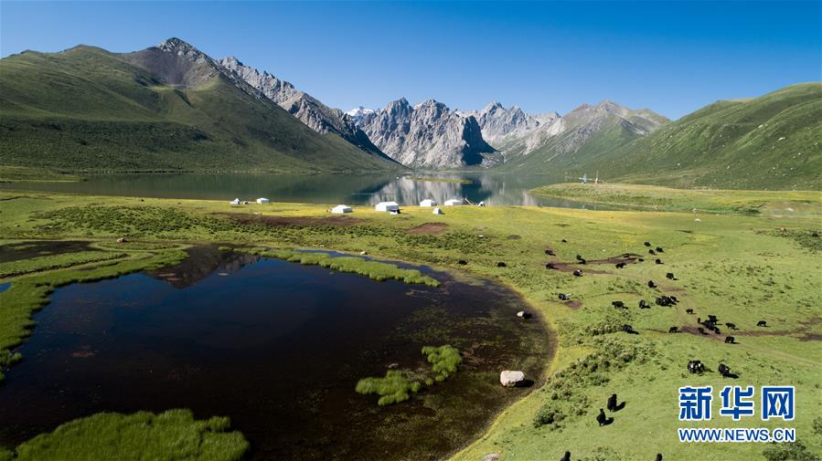 这是位于青海省果洛藏族自治州久治县境内的年保玉则风光(7月9日无人机拍摄)。新华社记者 吴刚 摄