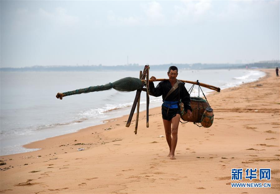 9月2日,渔民扛着捕获的小虾行走。 在清晨的山东省日照市近海海岸,有一群“踩高跷”捕小虾的捕虾人。他们在离岸边10余米的水中脚踩一米左右长的木棍,推着渔网与海岸平行前进。这种独特的捕虾方式,成为日照海岸线上一道别样的风景。 新华社记者王凯摄