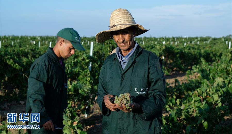 这是2018年10月1日在摩洛哥小镇鲁马尼,红农场酒庄的工作人员采摘葡萄。据红农场总经理马蒙·萨耶介绍,该酒庄正在扩大产能,希望通过参加中国国际进口博览会,将摩洛哥葡萄酒引进中国市场。 新华社记者陈斌杰摄