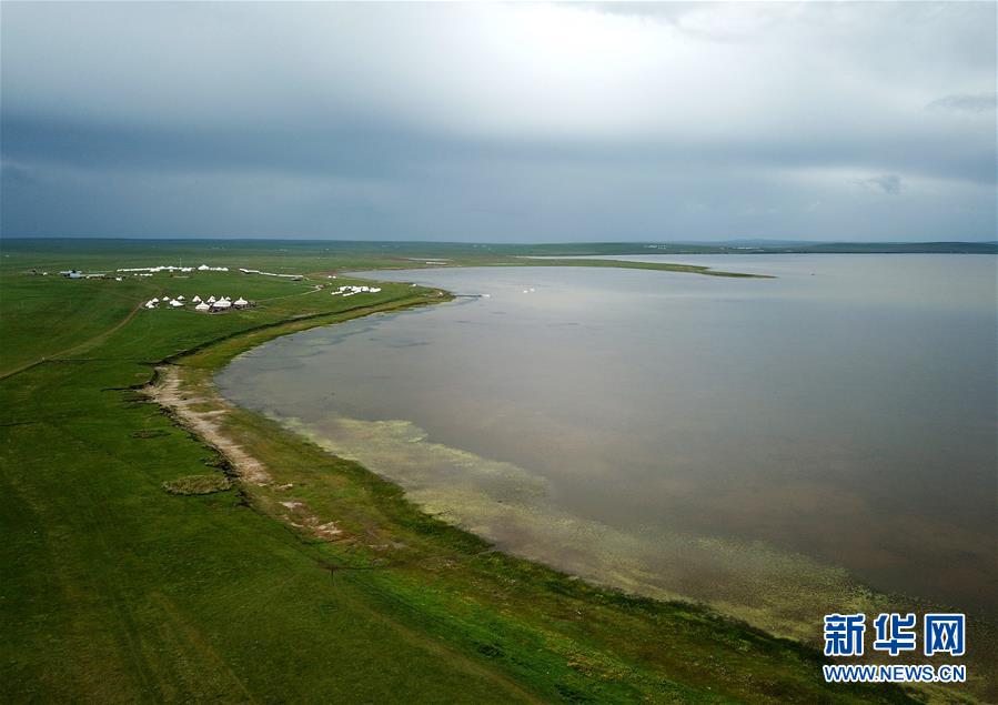 8月27日无人机拍摄的呼伦贝尔草原呼和诺尔湖。 新华社记者任军川摄