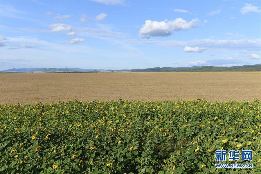 8月28日无人机拍摄的呼伦贝尔市额尔古纳市室韦农牧场的田园风光。 新华社记者刘磊摄