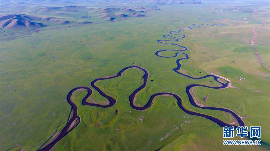 8月29日无人机拍摄的内蒙古呼伦贝尔市陈巴尔虎旗境内的莫日格勒河局部。 新华社记者彭源摄