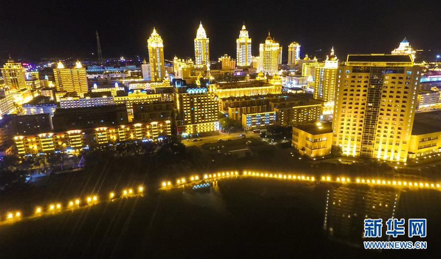 8月28日无人机拍摄的满洲里市中心夜景。满洲里市位于呼伦贝尔大草原腹地。 新华社记者彭源摄