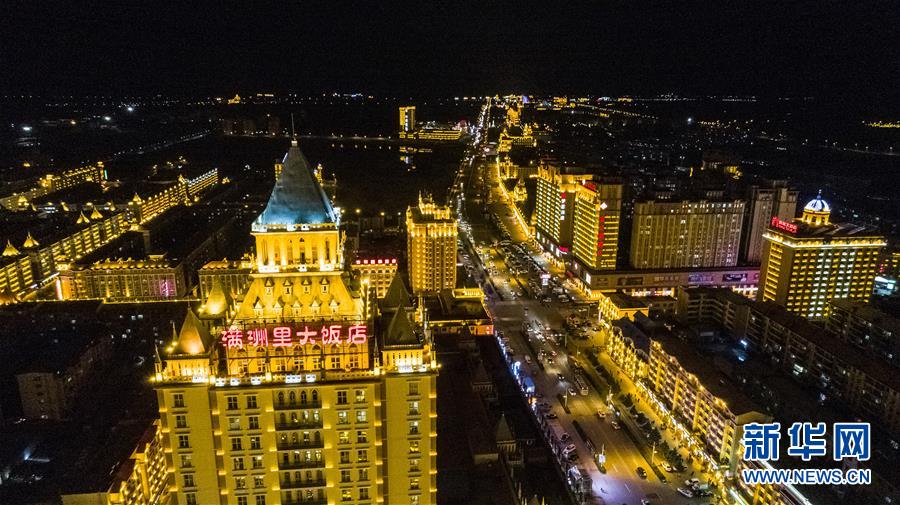 8月28日无人机拍摄的满洲里市中心夜景。满洲里市位于呼伦贝尔大草原腹地。 新华社记者沈伯韩摄
