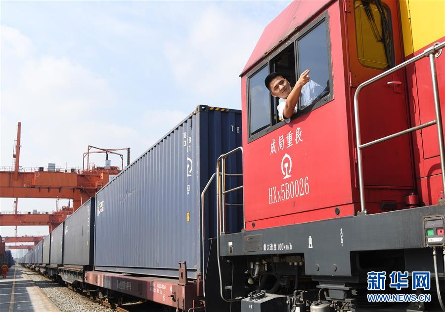 9月2日,“陆海新通道”铁海联运首次铁路箱下海出境专列的驾驶人员在进行发车前的信号确认作业。