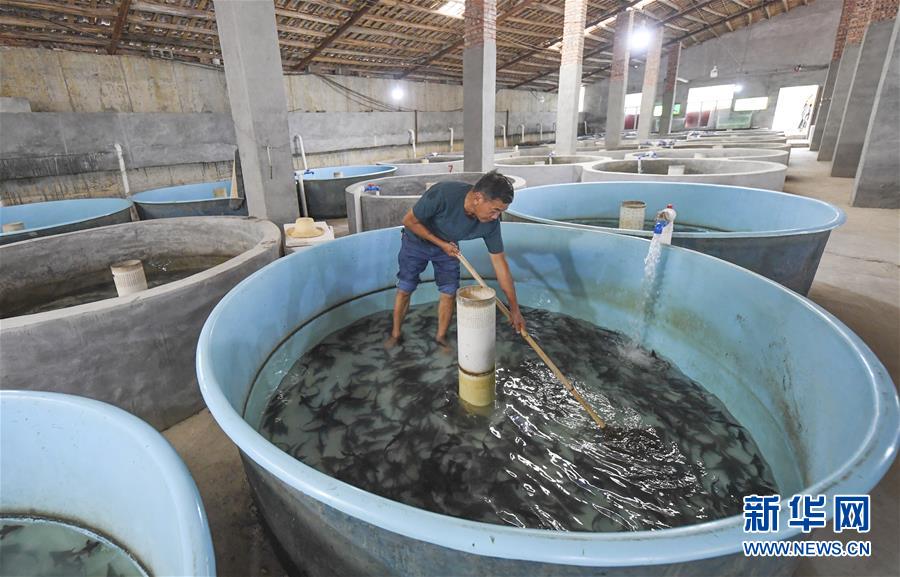 9月3日,蒋开均在开州侯家溪冷水鱼养殖基地幼鱼养殖池里清洁池子。新华社记者王全超摄