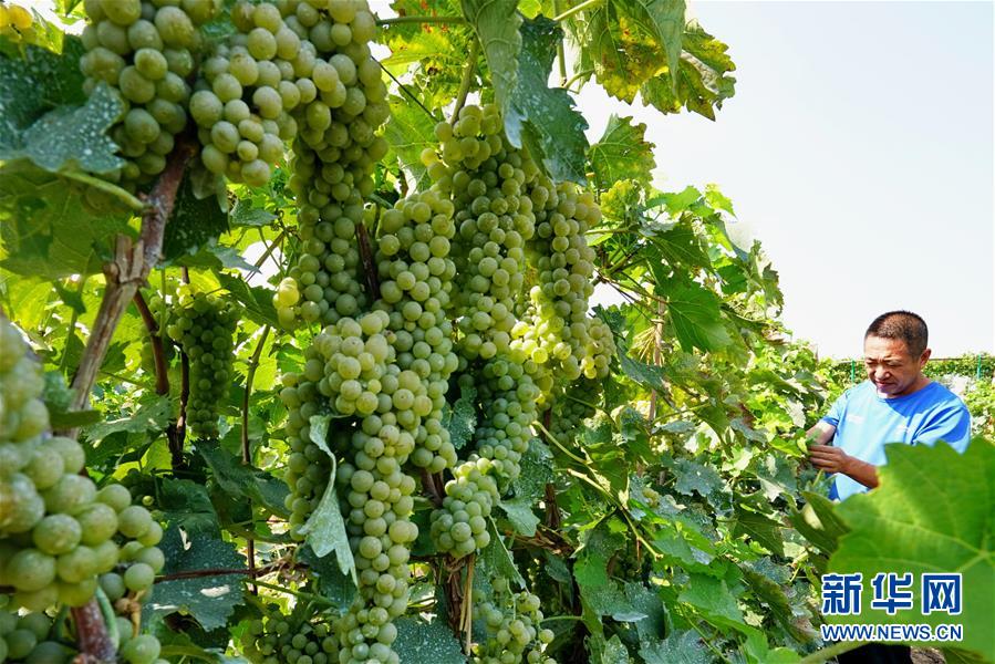 9月4日,河北省昌黎县十里铺乡耿庄村果农耿学刚在管理酿酒葡萄。 进入秋季以来,素有“中国酿酒葡萄之乡”美誉的河北昌黎县的果农抢抓农时对葡萄秧进行去枝叶管理,使酿酒葡萄更充分地接受光照,提高葡萄的糖分,以酿造优质葡萄酒。 据介绍,目前该县酿酒葡萄、鲜食葡萄种植面积达5万亩,年产值3亿多元。 新华社记者 杨世尧 摄