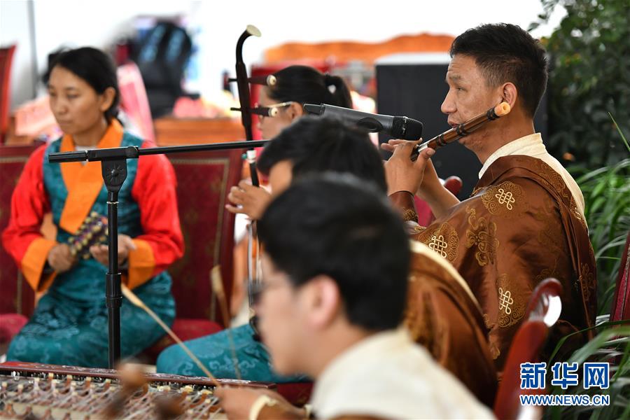 9月4日,西藏咔哒嘎布盲人乐团在拉萨市林周县敬老院演出。 当日,西藏咔哒嘎布盲人乐团来到拉萨市林周县敬老院,在雪顿节期间为老人们送上精彩演出。盲人乐团的成员长期得到社会各界的帮助,他们也努力用自己力所能及的方式回馈社会,为人们送去欢乐。 新华社记者 李鑫 摄