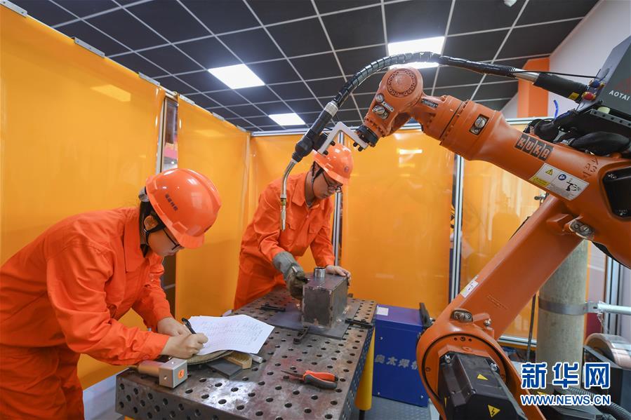 9月5日,参赛的工业机器人系统操作员在比赛中观察设计机器人的焊接轨迹。 当日,闽东北、闽西南机器人焊接技能大赛在福建省泉州市洛江区举行。这是福建省首次举办省级机器人焊接技能大赛。大赛由福建省总工会、福建省市场监督管理局主办,近30名来自省内汽车制造、机械制造等行业及院校代表参加。 新华社记者 宋为伟 摄