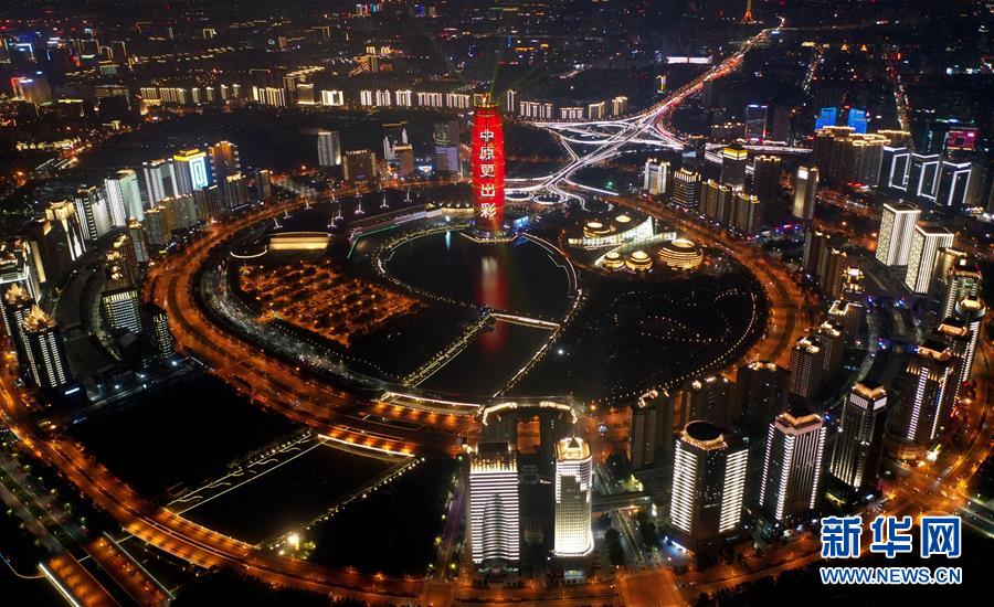 9月8日至16日,第十一届全国少数民族传统体育运动会将首次走进我国中部地区,在河南郑州举办。本届运动会吉祥物名为“中中”,一个“中”字代表了河南人民对国庆70周年前夕这场民族体育盛会的热情和期盼,办好这届盛会,中原儿女义不容辞。 这是无人机拍摄的郑州郑东新区夜景(9月4日摄)。 新华社记者李嘉南摄