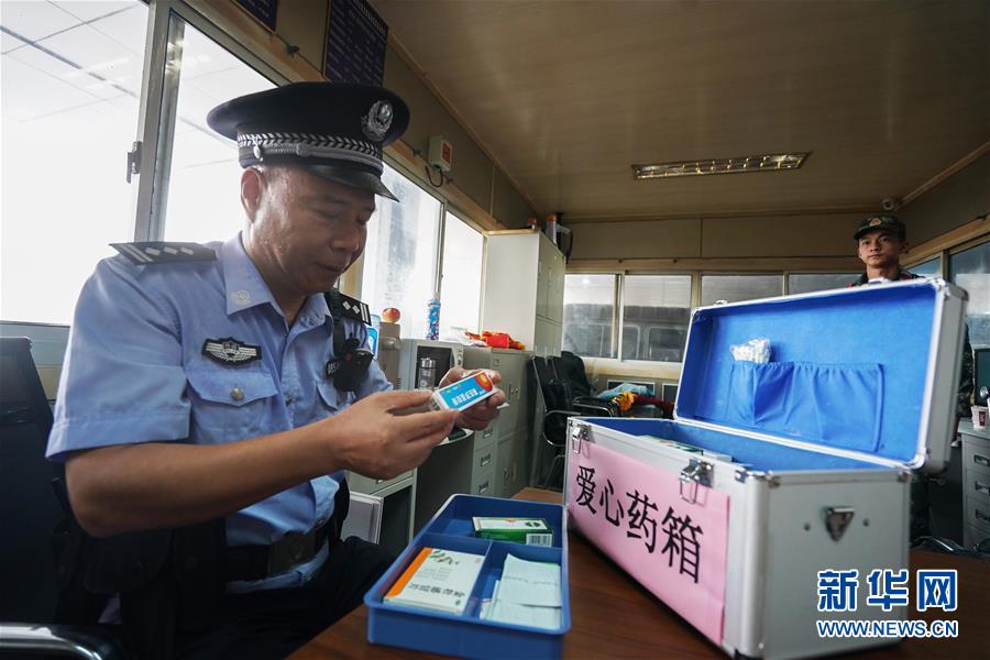 9月5日,在南京站联勤办公室,晋延生在整理爱心药箱。 新华社记者 季春鹏 摄
