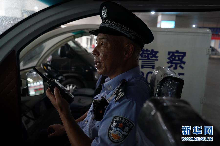 9月5日,在南京站站前广场,晋延生在执勤。 新华社记者 季春鹏 摄
