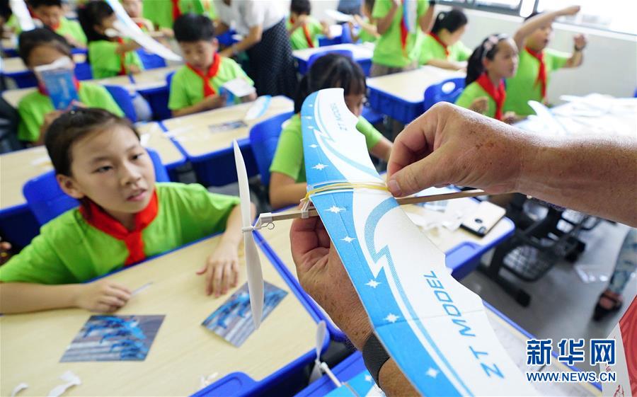 9月5日,在江西省景德镇市陶阳学校四年级的课堂上,学生们在学习制作航模。 新学期伊始,江西省景德镇市陶阳学校开展“让梦想起航 航空知识进校园”主题活动,邀请国内外的飞行员走进校园,和学生分享飞行经历与故事,并一起动手制作航模。 新华社记者 彭昭之 摄