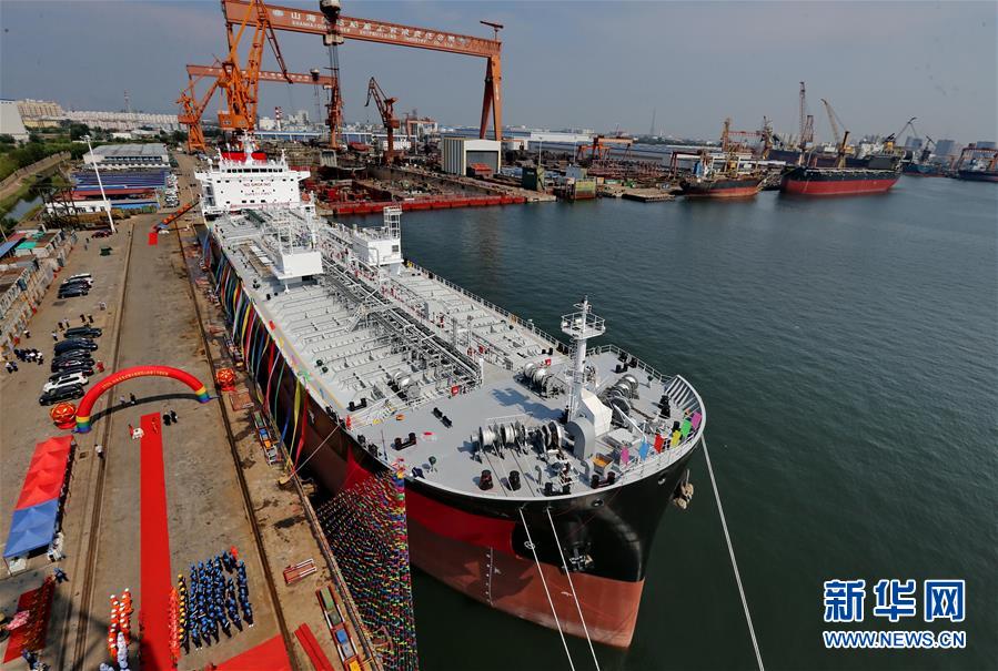 9月5日拍摄的靠泊在大船集团山海关船舶重工舾装码头的化学品船CT370-01轮。 当日,中船重工大船集团山海关船舶重工有限责任公司为西班牙船东建造的化学品船CT370-01轮命名、交付,这是河北省制造的第一艘出口海外的化学品船。 新华社记者 杨世尧 摄