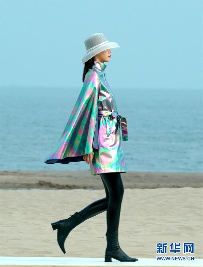 9月5日,模特在展示皮尔·卡丹时装。 当日,皮尔·卡丹2020春夏大型时装发布会在河北省秦皇岛市北戴河新区阿那亚沙滩举行。 新华社记者 陈建力 摄