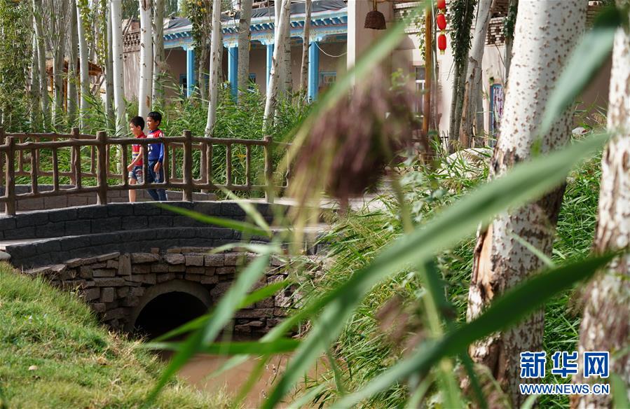 9月1日,在喀什市帕哈太克里乡,小朋友走过一座小桥。 新疆喀什市帕哈太克里乡地处塔克拉玛干沙漠边缘,乡外两河环绕,乡间稻田广布,是远近闻名的稻米产地。近年来,当地依托水稻资源优势,升级稻米产品,打造高端产品。此外,还通过村容村貌整治、引进农耕文化元素、升级田园风光等措施,推动农旅结合,打造出拥有小桥流水与传统民居的“江南水乡”,当地村民在“水乡”民宿、餐饮等岗位实现就业,实现脱贫增收。 新华社记者 陈君清 摄
