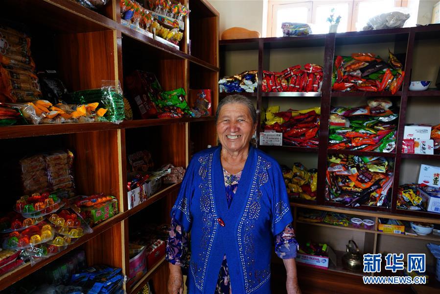 9月1日,在喀什市帕哈太克里乡,一名贫困户在她经营的小卖部中。 新疆喀什市帕哈太克里乡地处塔克拉玛干沙漠边缘,乡外两河环绕,乡间稻田广布,是远近闻名的稻米产地。近年来,当地依托水稻资源优势,升级稻米产品,打造高端产品。此外,还通过村容村貌整治、引进农耕文化元素、升级田园风光等措施,推动农旅结合,打造出拥有小桥流水与传统民居的“江南水乡”,当地村民在“水乡”民宿、餐饮等岗位实现就业,实现脱贫增收。 新华社记者 陈君清 摄